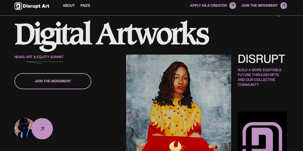 [Picture] Home page for DisruptArt How To Sell NFT ArtOnce your NFT art is minted, your next job is to promote...